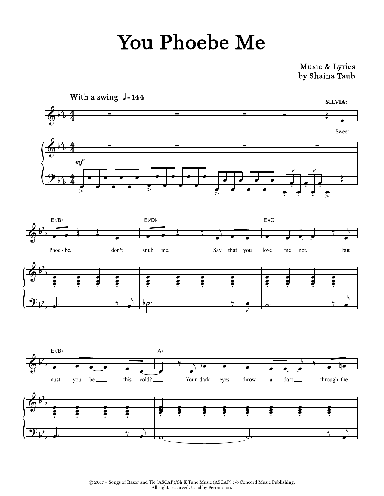 Download or print Shaina Taub You Phoebe Me (from As You Like It) sheet music, chords and digital score arranged for Piano & Vocal. This Musical/Show score includes 10 page(s).