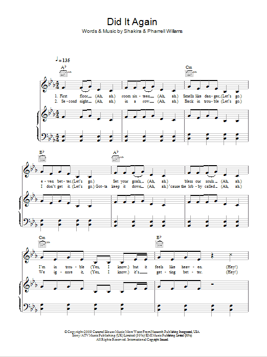 Download or print Shakira Did It Again sheet music, chords and digital score arranged for Piano, Vocal & Guitar Chords. This Latin score includes 7 page(s).