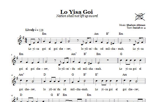 Download or print Shalom Altman Lo Yisa Goi (Nation Shall Not Lift Up Sword) sheet music, chords and digital score arranged for Lead Sheet / Fake Book. This Traditional score includes 1 page(s).