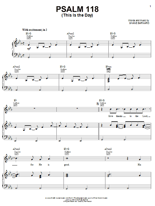 Download or print Shane & Shane Psalm 118 (This Is The Day) sheet music, chords and digital score arranged for Piano, Vocal & Guitar Chords (Right-Hand Melody). This Christian score includes 9 page(s).