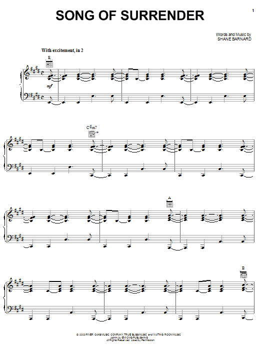 Download or print Shane & Shane Song Of Surrender sheet music, chords and digital score arranged for Piano, Vocal & Guitar Chords (Right-Hand Melody). This Christian score includes 13 page(s).