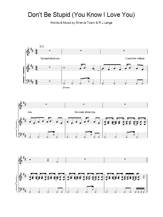 Download or print Shania Twain Don't Be Stupid (You Know I Love You) sheet music, chords and digital score arranged for Guitar Chords/Lyrics. This Pop score includes 3 page(s).