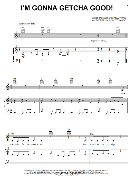 Quick facts I'm Gonna Getcha Good! about digital sheet music