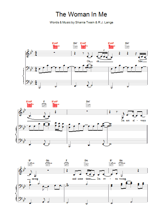 Download or print Shania Twain The Woman In Me (Needs The Man In You) sheet music, chords and digital score arranged for Guitar Chords/Lyrics. This Pop score includes 2 page(s).