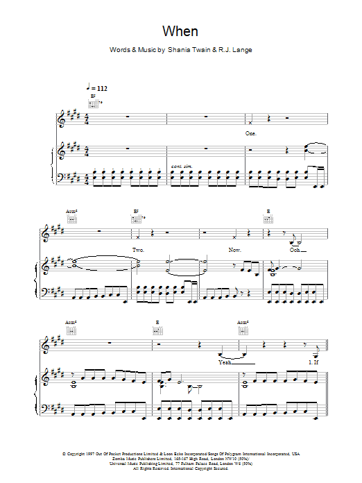 Download or print Shania Twain When sheet music, chords and digital score arranged for Piano Chords/Lyrics. This Country score includes 2 page(s).