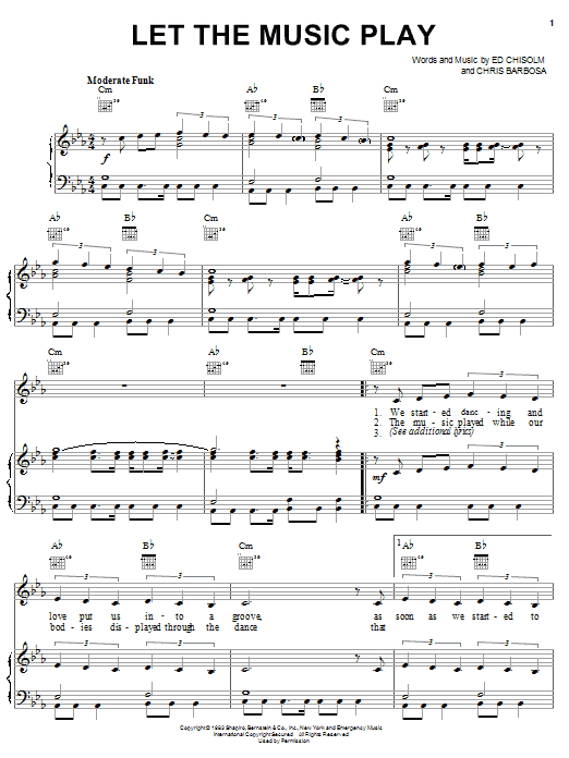Download or print Shannon Let The Music Play sheet music, chords and digital score arranged for Piano, Vocal & Guitar Chords (Right-Hand Melody). This Pop score includes 6 page(s).