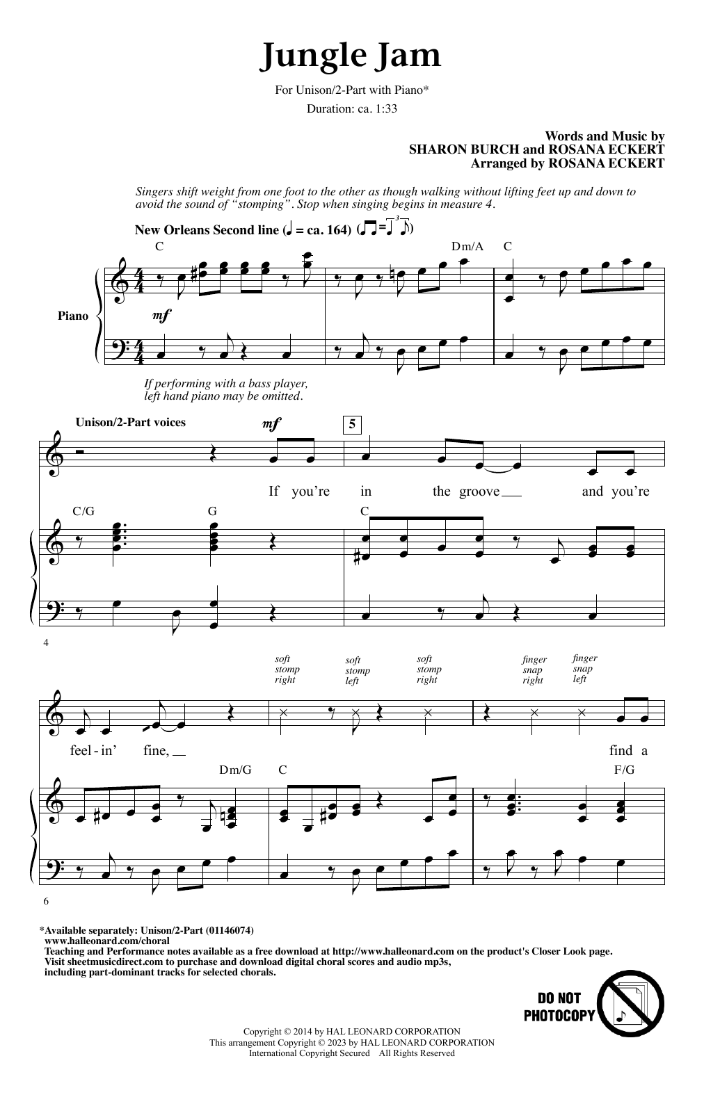 Download or print Sharon Burch and Rosana Eckert Jungle Jam sheet music, chords and digital score arranged for Choir. This Jazz score includes 7 page(s).
