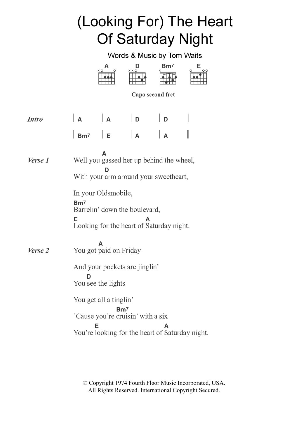 Quick facts (Looking For) The Heart Of Saturday Night about digital sheet music