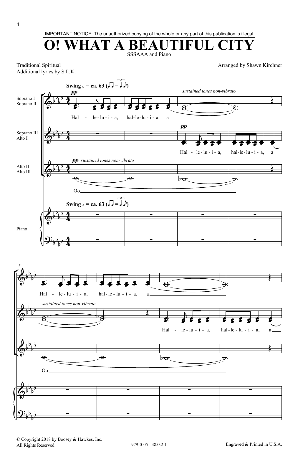 Download or print Shawn Kirchner O! What A Beautiful City sheet music, chords and digital score arranged for SSA Choir. This Gospel score includes 16 page(s).