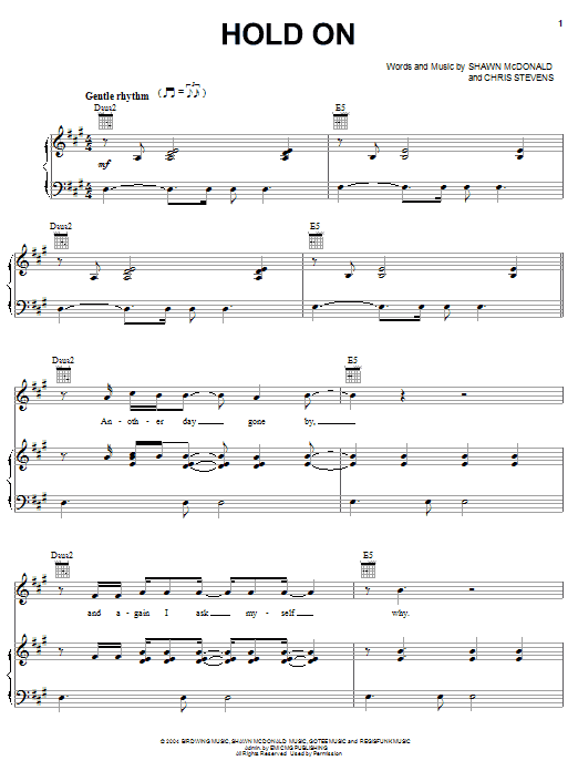 Download or print Shawn McDonald Hold On sheet music, chords and digital score arranged for Piano, Vocal & Guitar Chords (Right-Hand Melody). This Christian score includes 8 page(s).