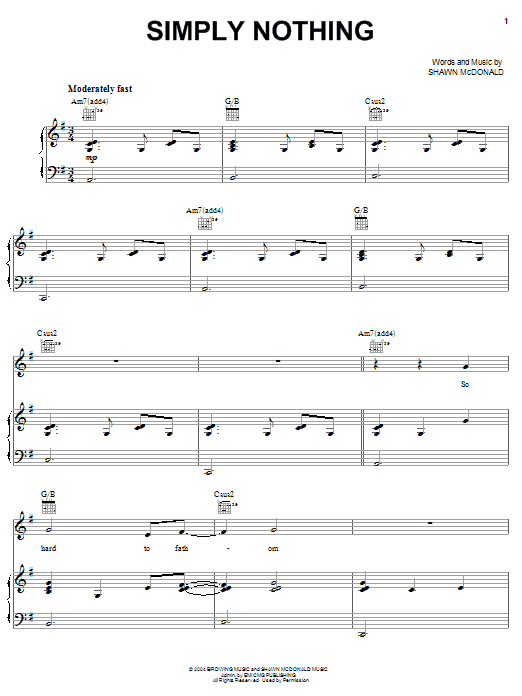 Download or print Shawn McDonald Simply Nothing sheet music, chords and digital score arranged for Piano, Vocal & Guitar Chords (Right-Hand Melody). This Christian score includes 11 page(s).