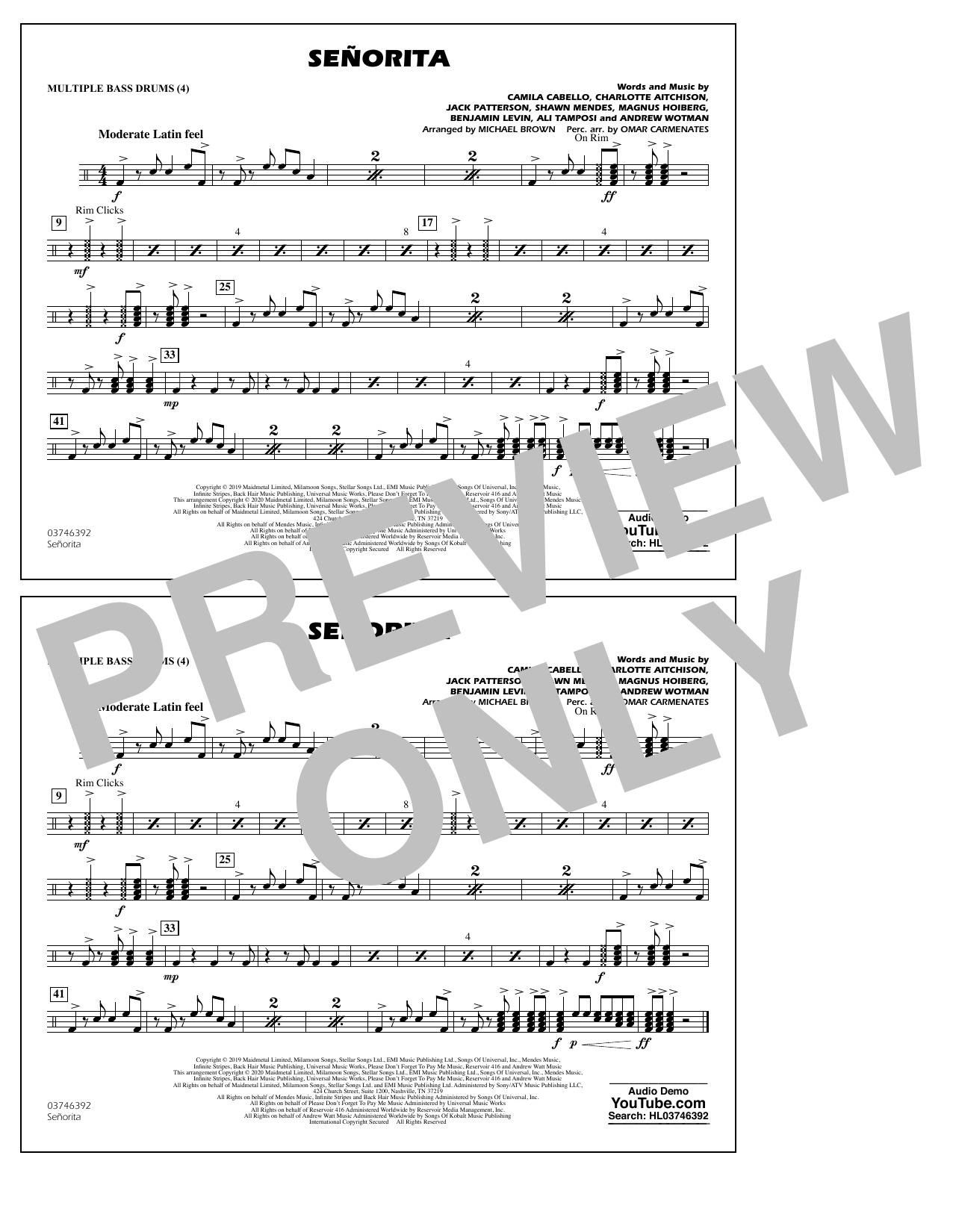 Quick facts Señorita (arr. Carmenates and Brown) - Multiple Bass Drums about digital sheet music