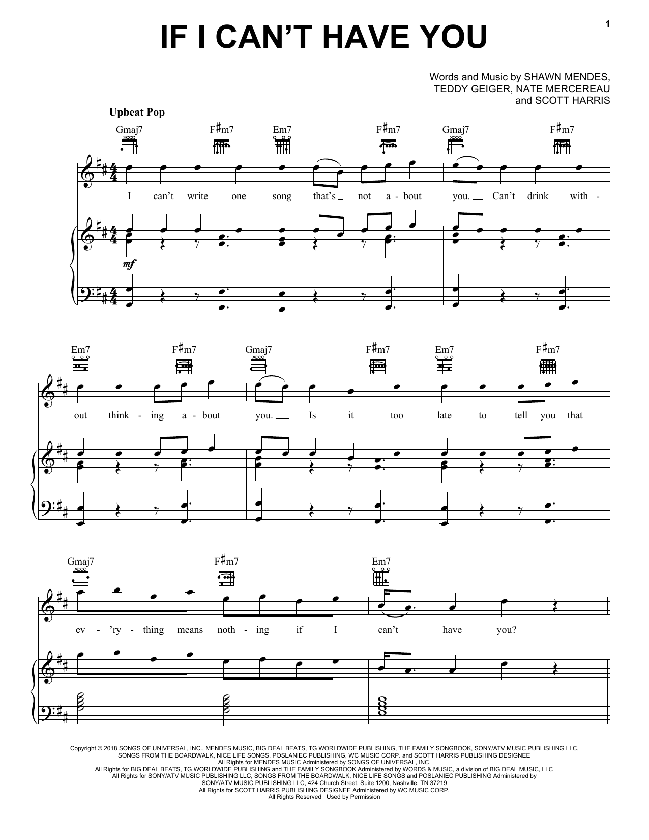 Download or print Shawn Mendes If I Can't Have You sheet music, chords and digital score arranged for Easy Piano. This Pop score includes 6 page(s).