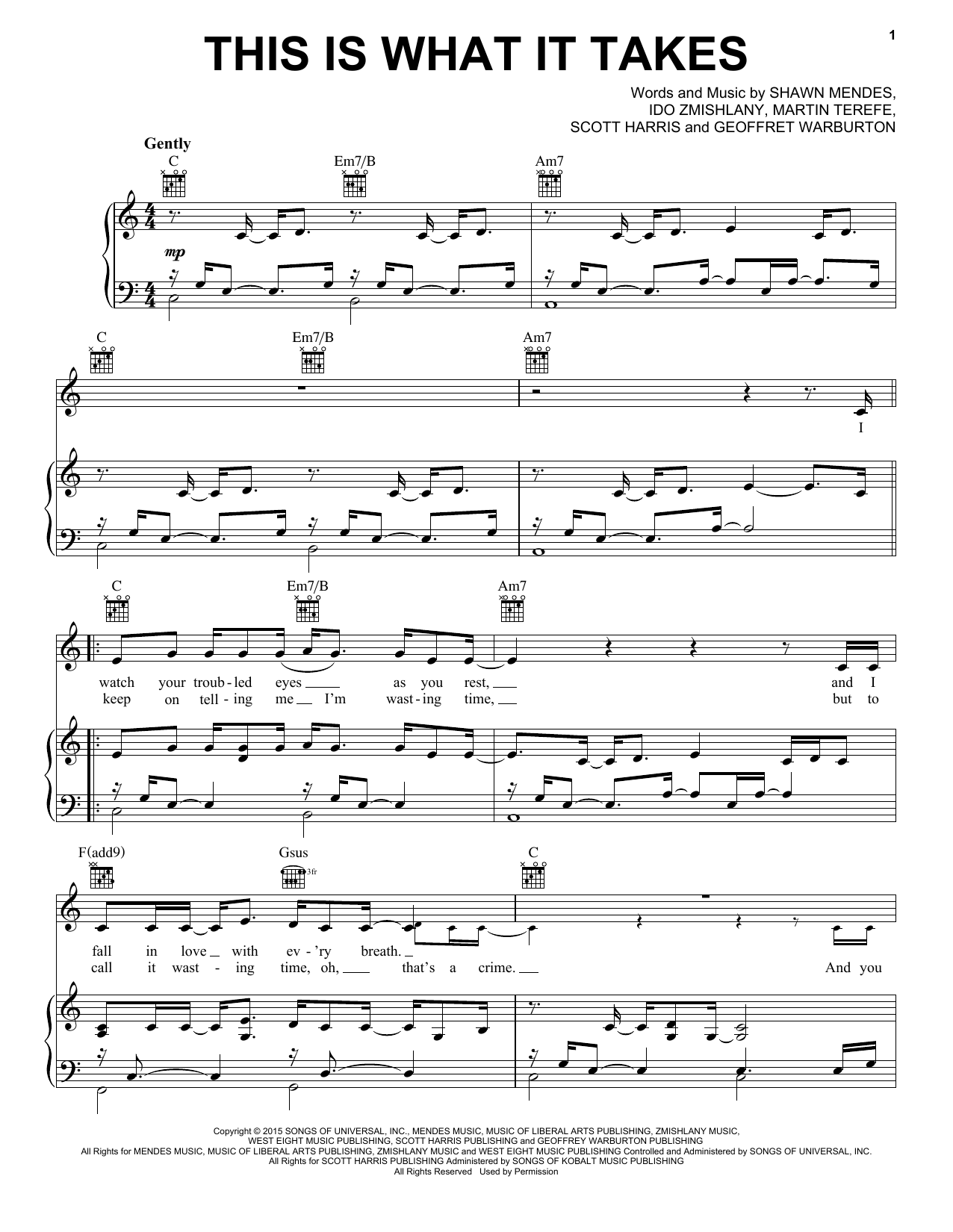Download or print Shawn Mendes This Is What It Takes sheet music, chords and digital score arranged for Piano, Vocal & Guitar Chords (Right-Hand Melody). This Pop score includes 6 page(s).