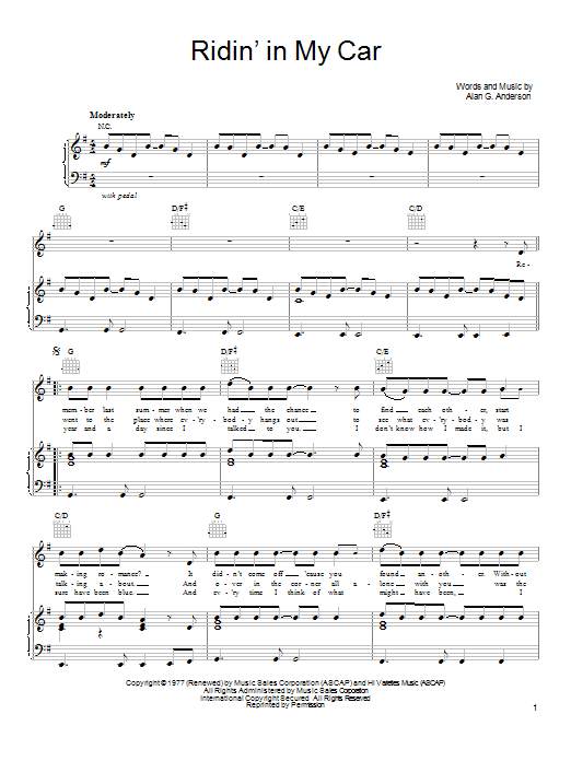 Quick facts Ridin' In My Car about digital sheet music