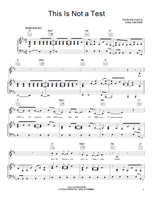 Download or print She & Him This Is Not A Test sheet music, chords and digital score arranged for Piano, Vocal & Guitar Chords (Right-Hand Melody). This Alternative score includes 5 page(s).