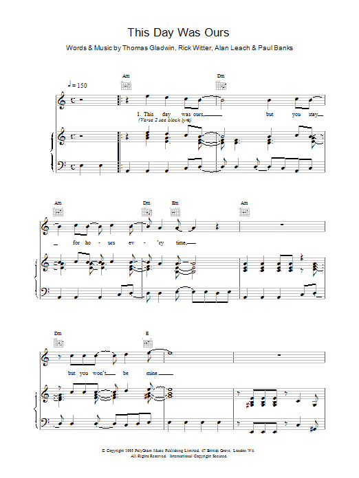 Download or print Shed Seven This Day Was Ours sheet music, chords and digital score arranged for Piano, Vocal & Guitar Chords. This Pop score includes 5 page(s).