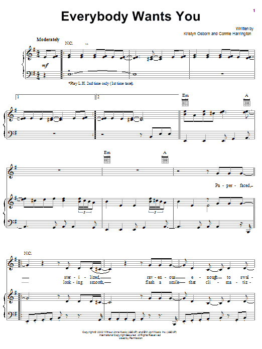 Download or print SHeDAISY Everybody Wants You sheet music, chords and digital score arranged for Piano, Vocal & Guitar Chords (Right-Hand Melody). This Country score includes 7 page(s).