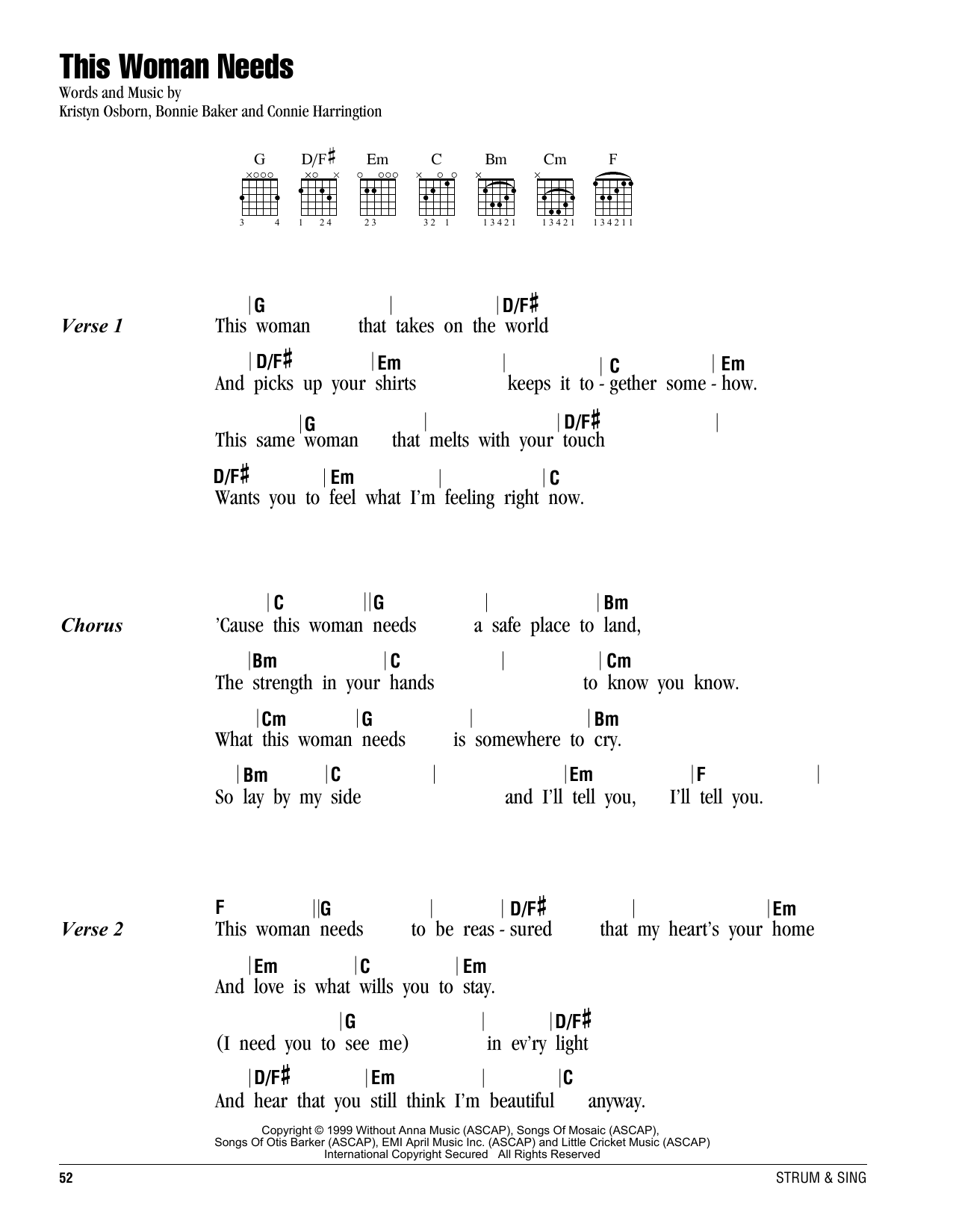 Download or print SHeDAISY This Woman Needs sheet music, chords and digital score arranged for Guitar Chords/Lyrics. This Pop score includes 2 page(s).