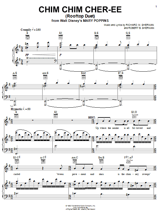Download or print Sherman Brothers Chim Chim Cher-ee (from Mary Poppins: The Musical) sheet music, chords and digital score arranged for Easy Piano. This Children score includes 8 page(s).