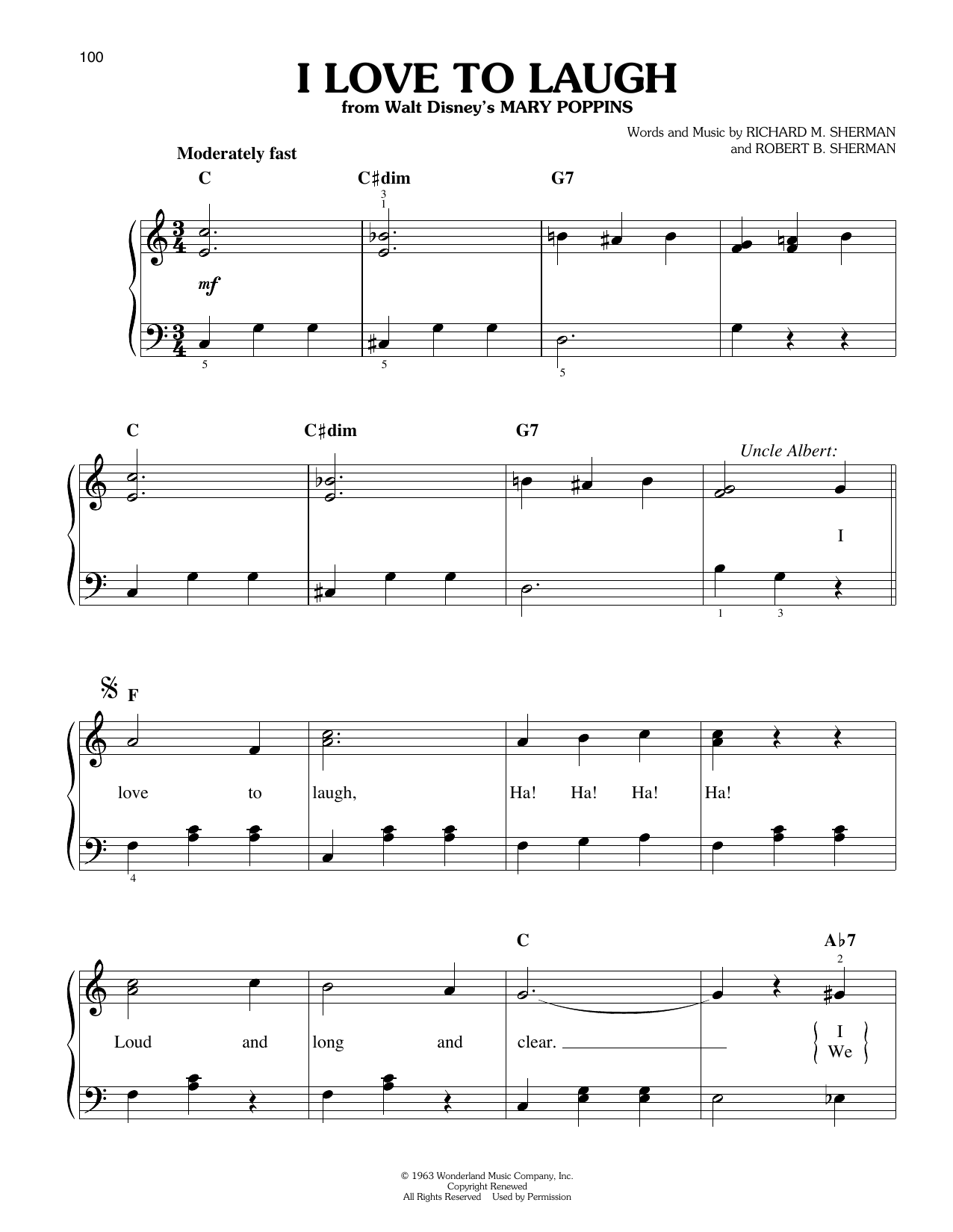 Download or print Sherman Brothers I Love To Laugh (from Mary Poppins) sheet music, chords and digital score arranged for Easy Piano. This Disney score includes 6 page(s).