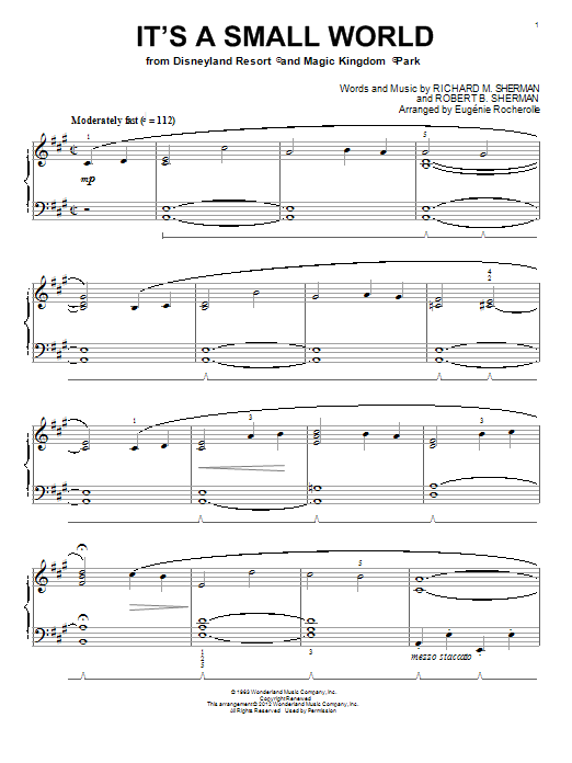 Quick facts It's A Small World (arr. Eugenie Rocherolle) about digital sheet music