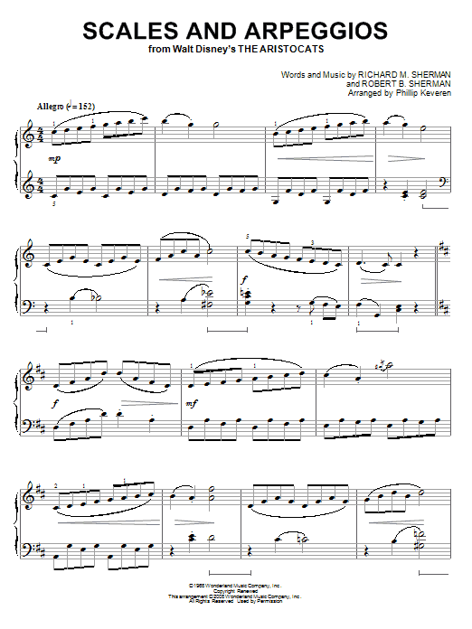 Quick facts Scales And Arpeggios [Classical version] (from The Aristocats) (arr. Phillip Keveren) about digital sheet music