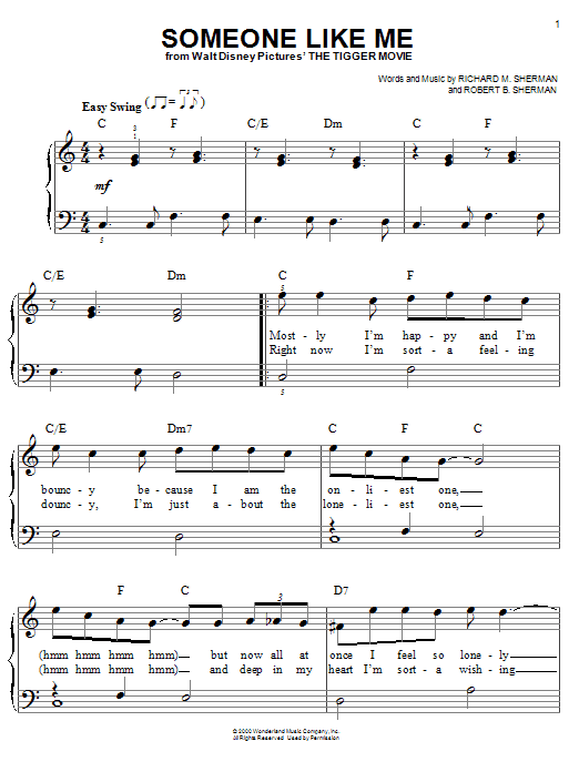Download or print Sherman Brothers Someone Like Me sheet music, chords and digital score arranged for Easy Piano. This Children score includes 4 page(s).