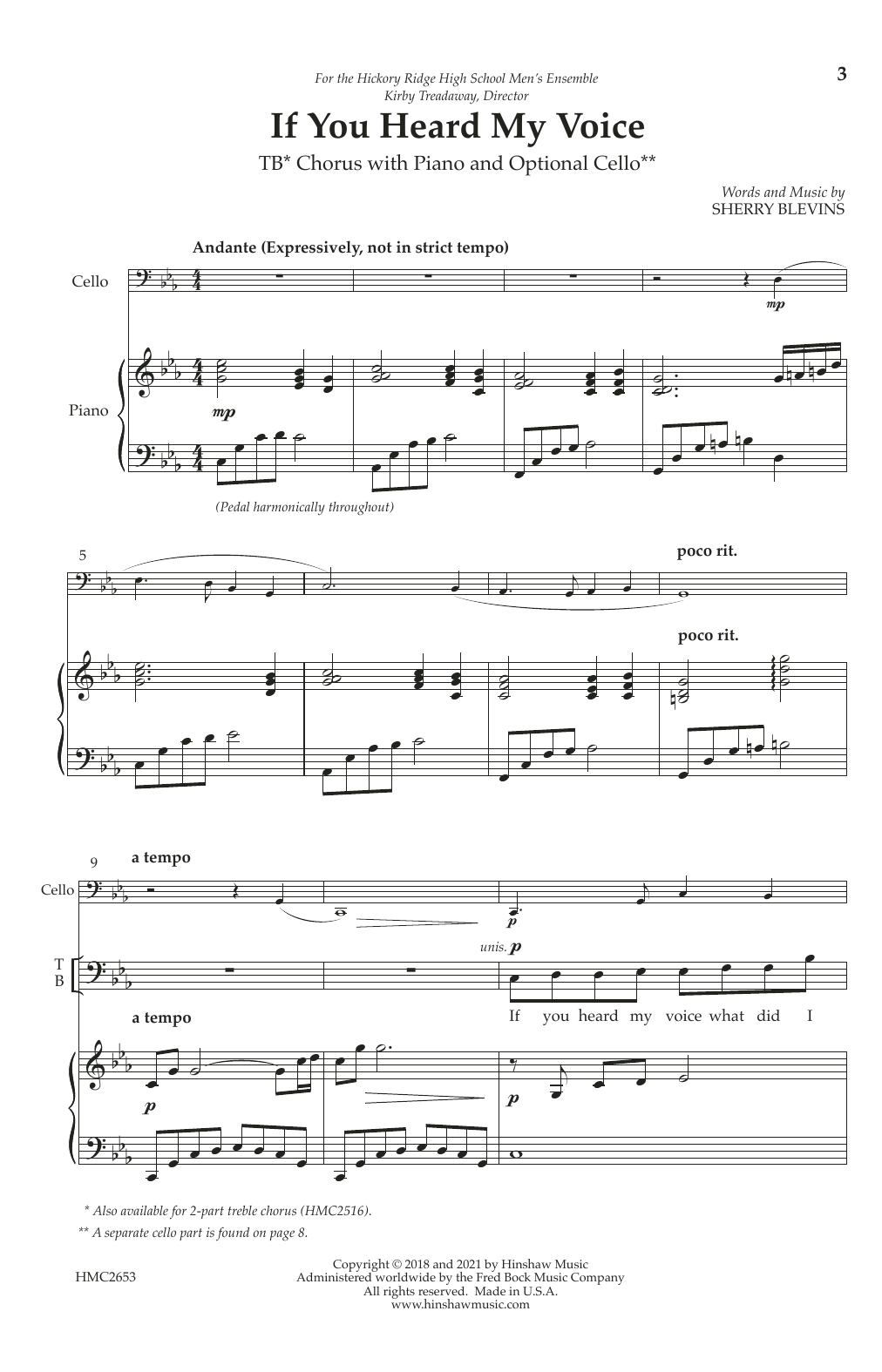 Download or print Sherry Blevins If You Heard My Voice sheet music, chords and digital score arranged for TB Choir. This Concert score includes 7 page(s).