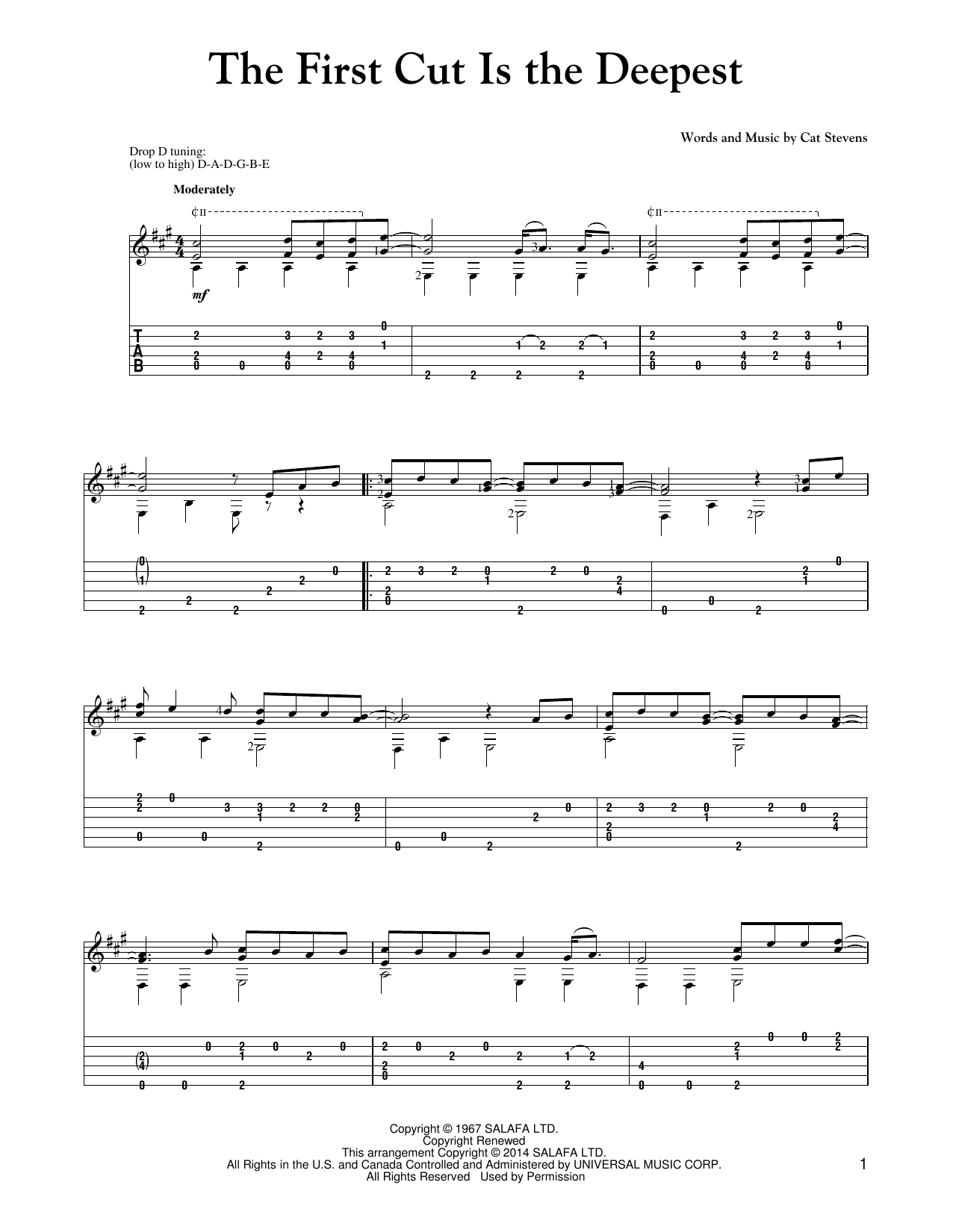 Download or print Mark Phillips The First Cut Is The Deepest sheet music, chords and digital score arranged for Solo Guitar. This Pop score includes 2 page(s).