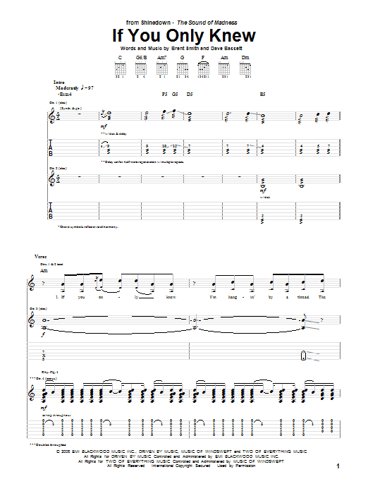 Download or print Shinedown If You Only Knew sheet music, chords and digital score arranged for Piano, Vocal & Guitar Chords (Right-Hand Melody). This Metal score includes 5 page(s).