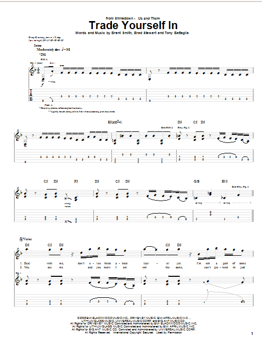 Download or print Shinedown Trade Yourself In sheet music, chords and digital score arranged for Guitar Tab. This Metal score includes 10 page(s).
