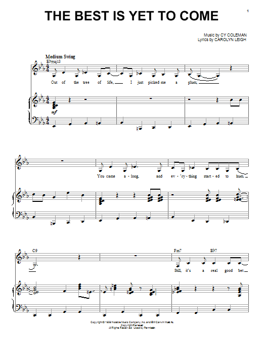 Download or print Shirley Horn The Best Is Yet To Come sheet music, chords and digital score arranged for Piano & Vocal. This Jazz score includes 7 page(s).
