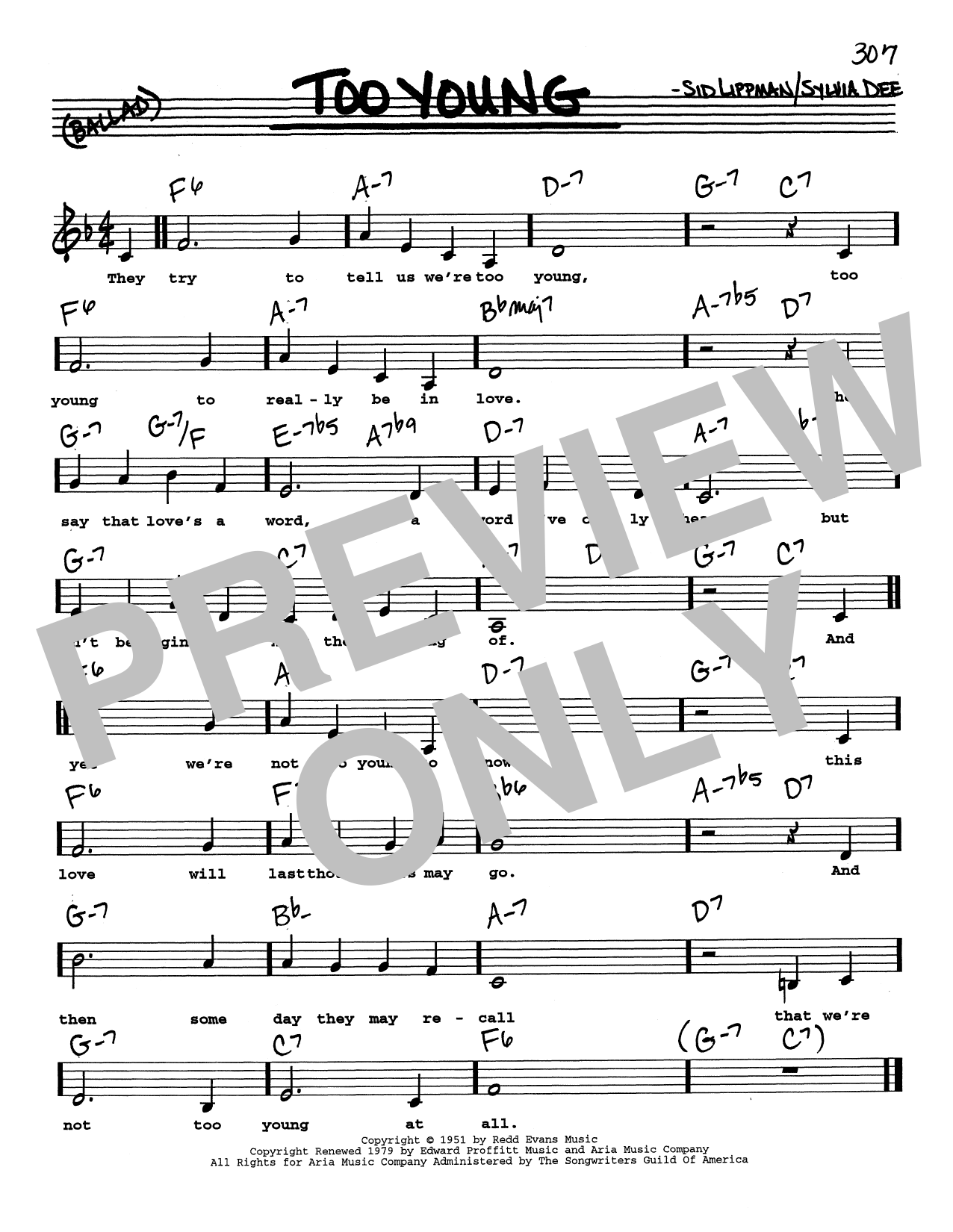 Download or print Sid Lippman Too Young (Low Voice) sheet music, chords and digital score arranged for Real Book – Melody, Lyrics & Chords. This Jazz score includes 1 page(s).