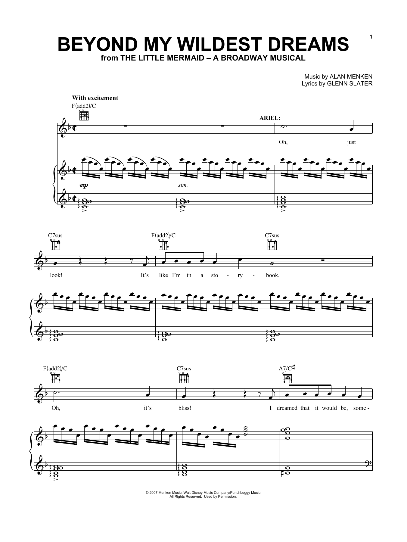 Download or print Sierra Boggess Beyond My Wildest Dreams (from The Little Mermaid Musical) sheet music, chords and digital score arranged for Vocal Pro + Piano/Guitar. This Disney score includes 8 page(s).