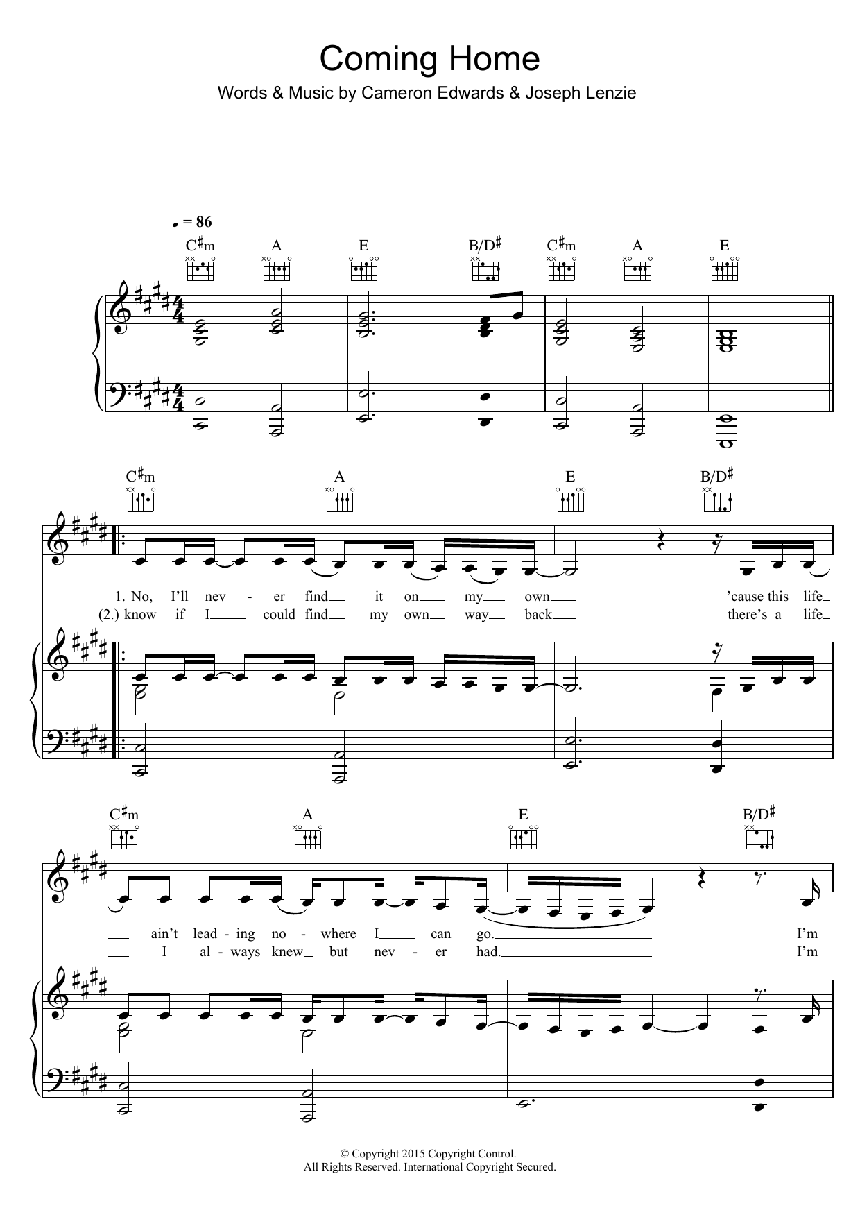 Download or print Sigma Coming Home (featuring Rita Ora) sheet music, chords and digital score arranged for Piano, Vocal & Guitar Chords. This Pop score includes 6 page(s).