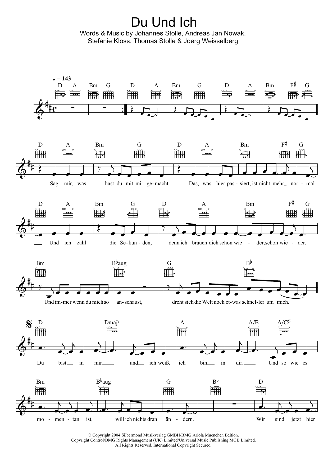 Download or print Silbermond Du Und Ich sheet music, chords and digital score arranged for Lead Sheet / Fake Book. This Pop score includes 3 page(s).