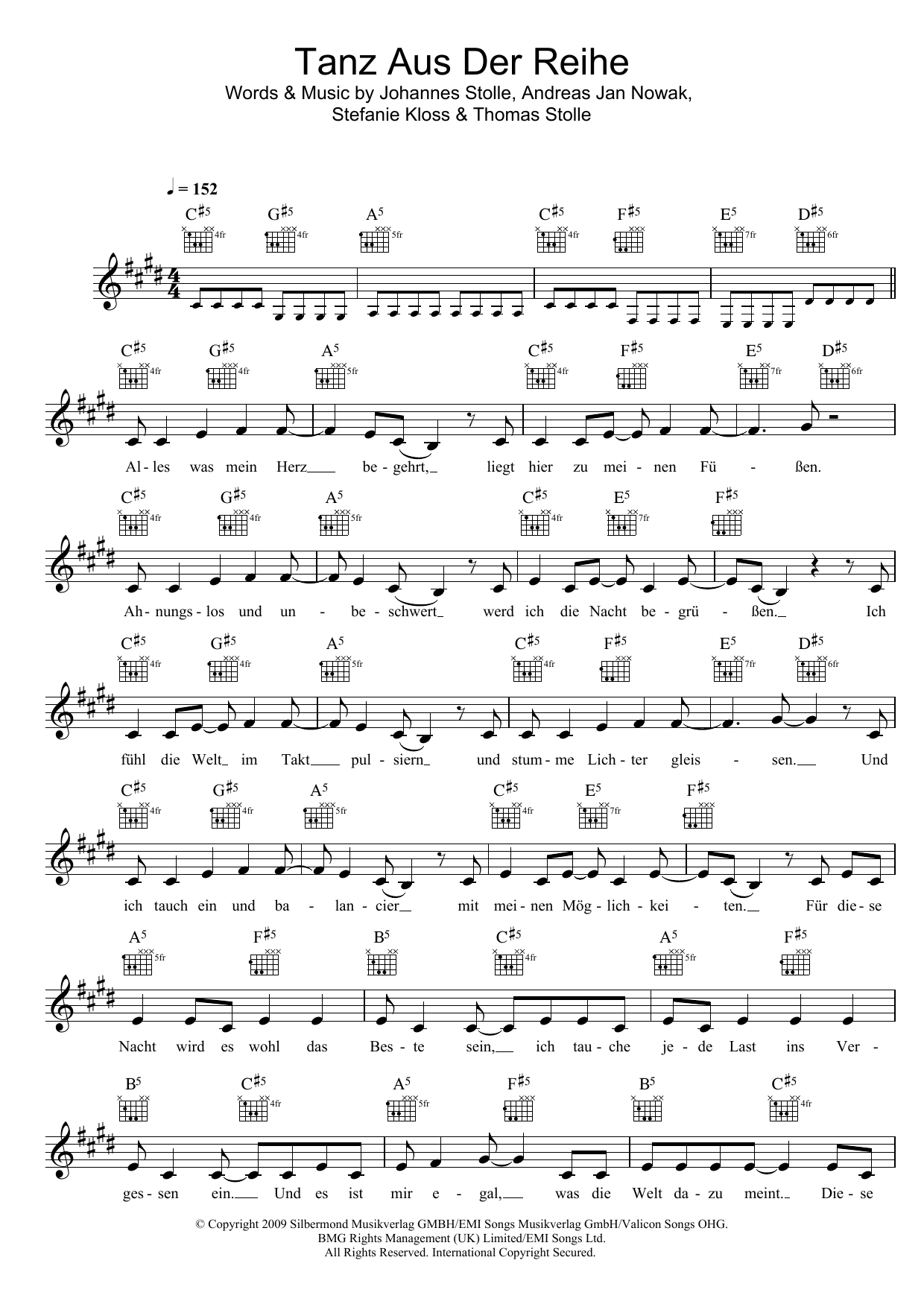 Download or print Silbermond Tanz Aus Der Reihe sheet music, chords and digital score arranged for Lead Sheet / Fake Book. This Pop score includes 3 page(s).