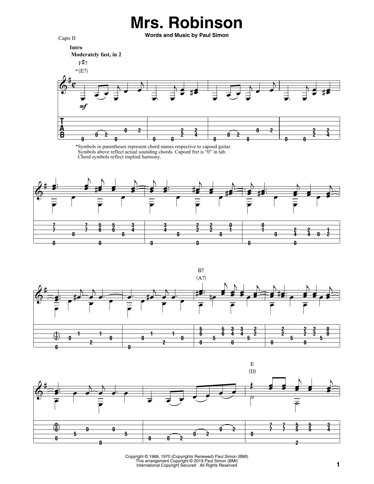 Download or print Simon & Garfunkel Mrs. Robinson (arr. Bill LaFleur) sheet music, chords and digital score arranged for Solo Guitar. This Pop score includes 7 page(s).
