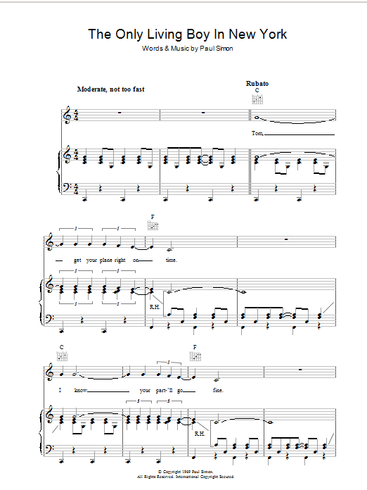 Download or print Simon & Garfunkel The Only Living Boy In New York sheet music, chords and digital score arranged for Guitar Chords/Lyrics. This Pop score includes 2 page(s).