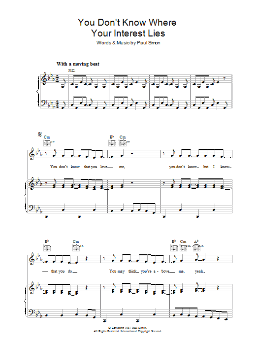 Download or print Simon & Garfunkel You Don't Know Where Your Interest Lies sheet music, chords and digital score arranged for Piano, Vocal & Guitar Chords. This Folk score includes 5 page(s).