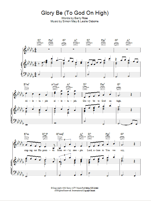 Download or print Simon May Glory Be (To God On High) sheet music, chords and digital score arranged for Piano, Vocal & Guitar Chords. This Film/TV score includes 7 page(s).