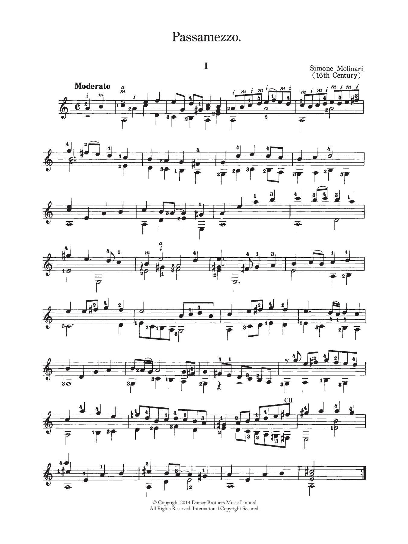 Download or print Simone Molinari Passamezzo sheet music, chords and digital score arranged for Easy Guitar. This Classical score includes 2 page(s).