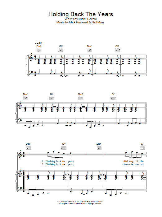 Download or print Simply Red Holding Back The Years sheet music, chords and digital score arranged for Super Easy Piano. This Rock score includes 2 page(s).