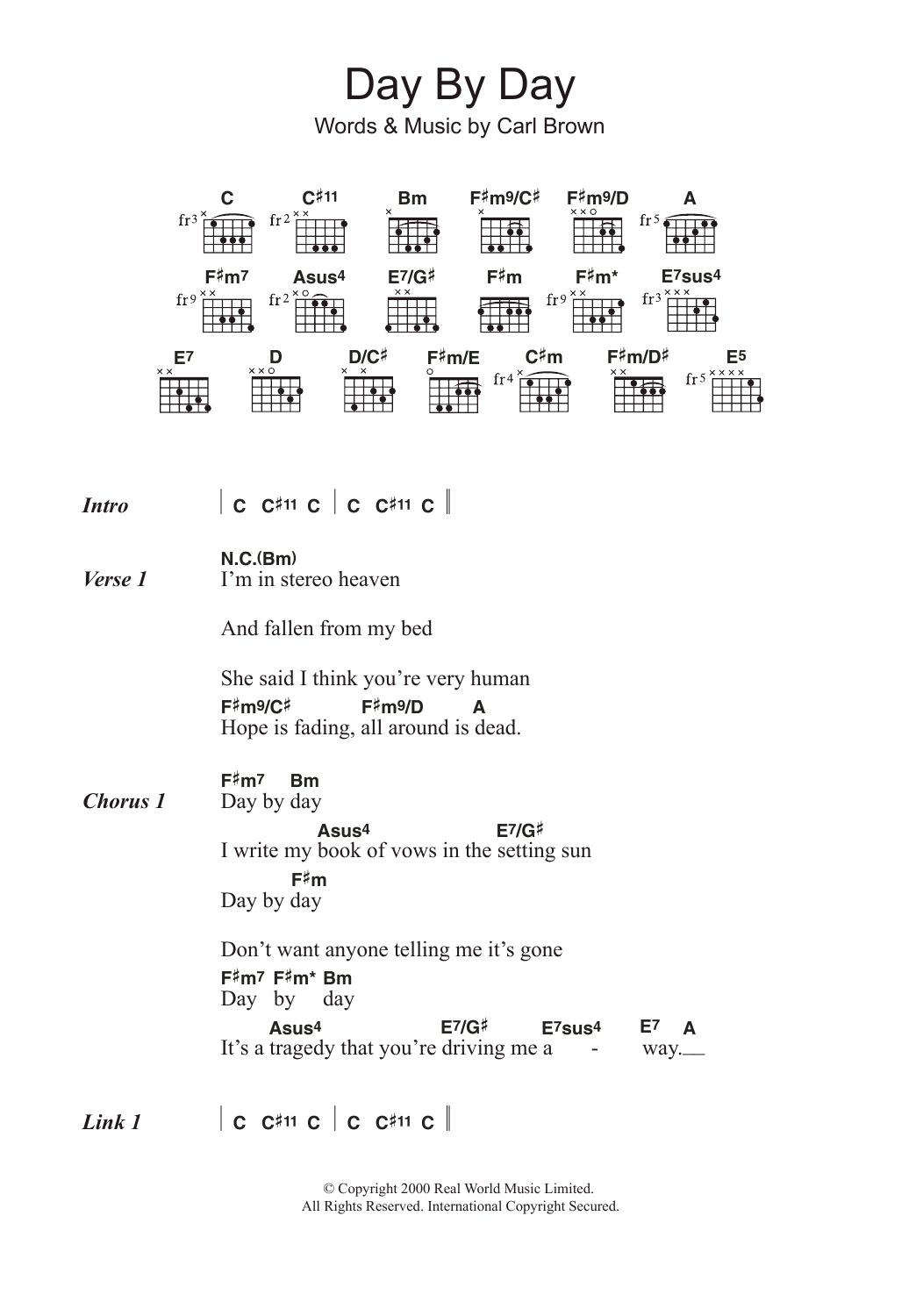 Download or print Sizer Barker Day By Day sheet music, chords and digital score arranged for Guitar Chords/Lyrics. This Pop score includes 3 page(s).