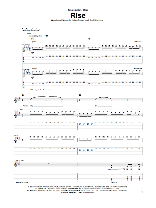 Download or print Skillet Rise sheet music, chords and digital score arranged for Guitar Tab. This Christian score includes 9 page(s).