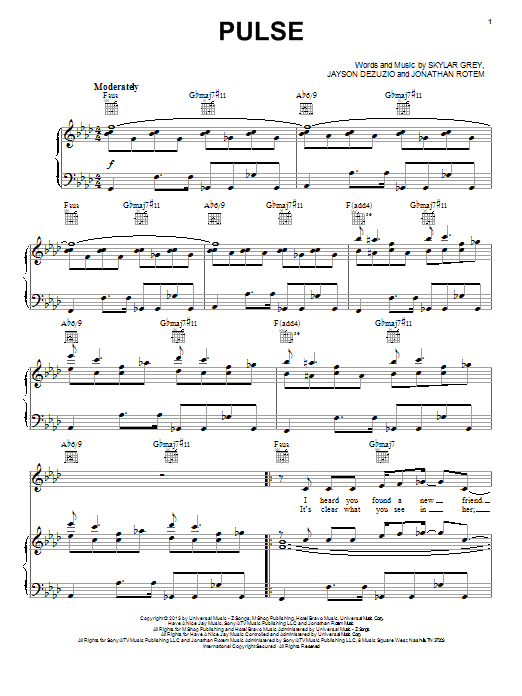 Download or print Skylar Grey Pulse sheet music, chords and digital score arranged for Piano, Vocal & Guitar Chords (Right-Hand Melody). This Pop score includes 8 page(s).