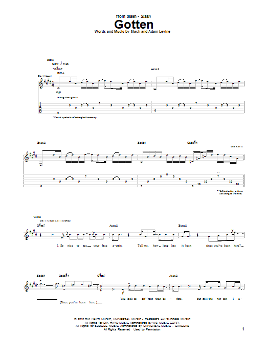 Download or print Slash Gotten sheet music, chords and digital score arranged for Guitar Tab. This Pop score includes 12 page(s).