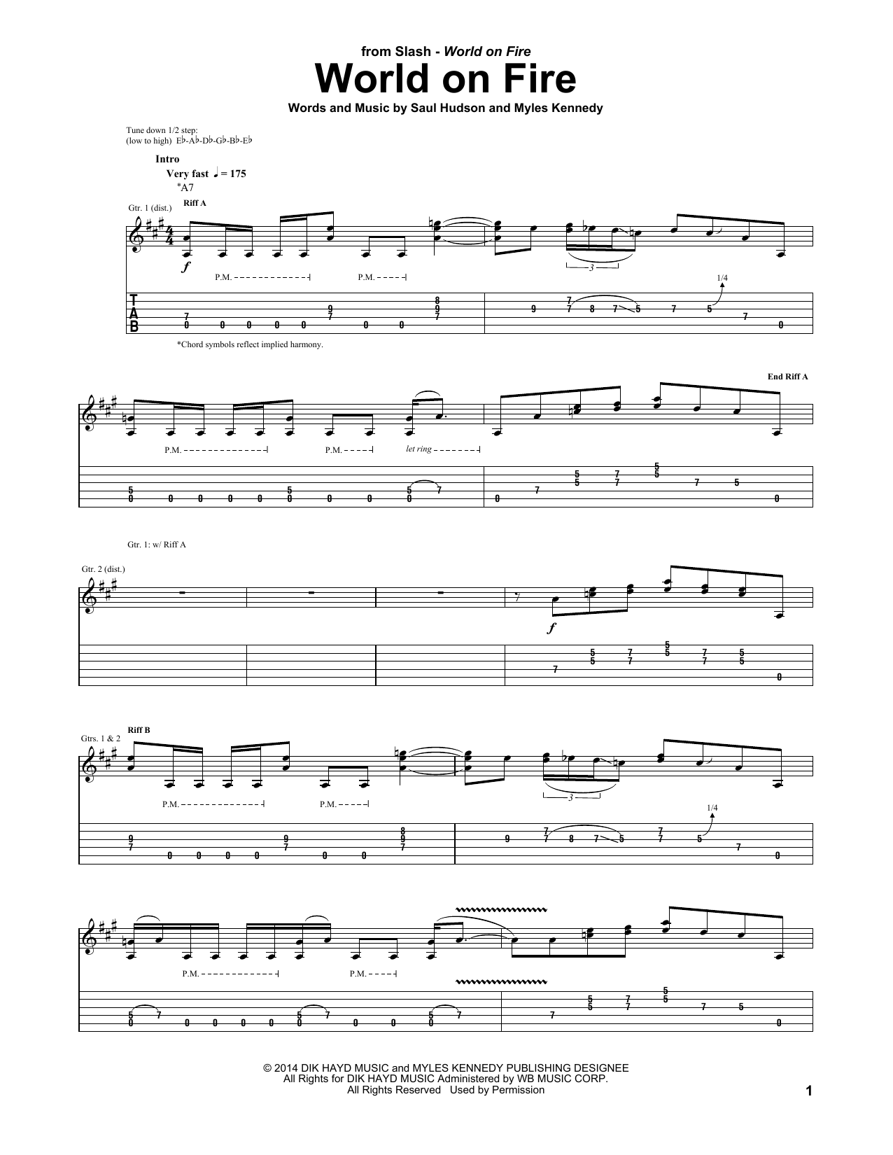 Download or print Slash World On Fire sheet music, chords and digital score arranged for Guitar Tab. This Pop score includes 12 page(s).