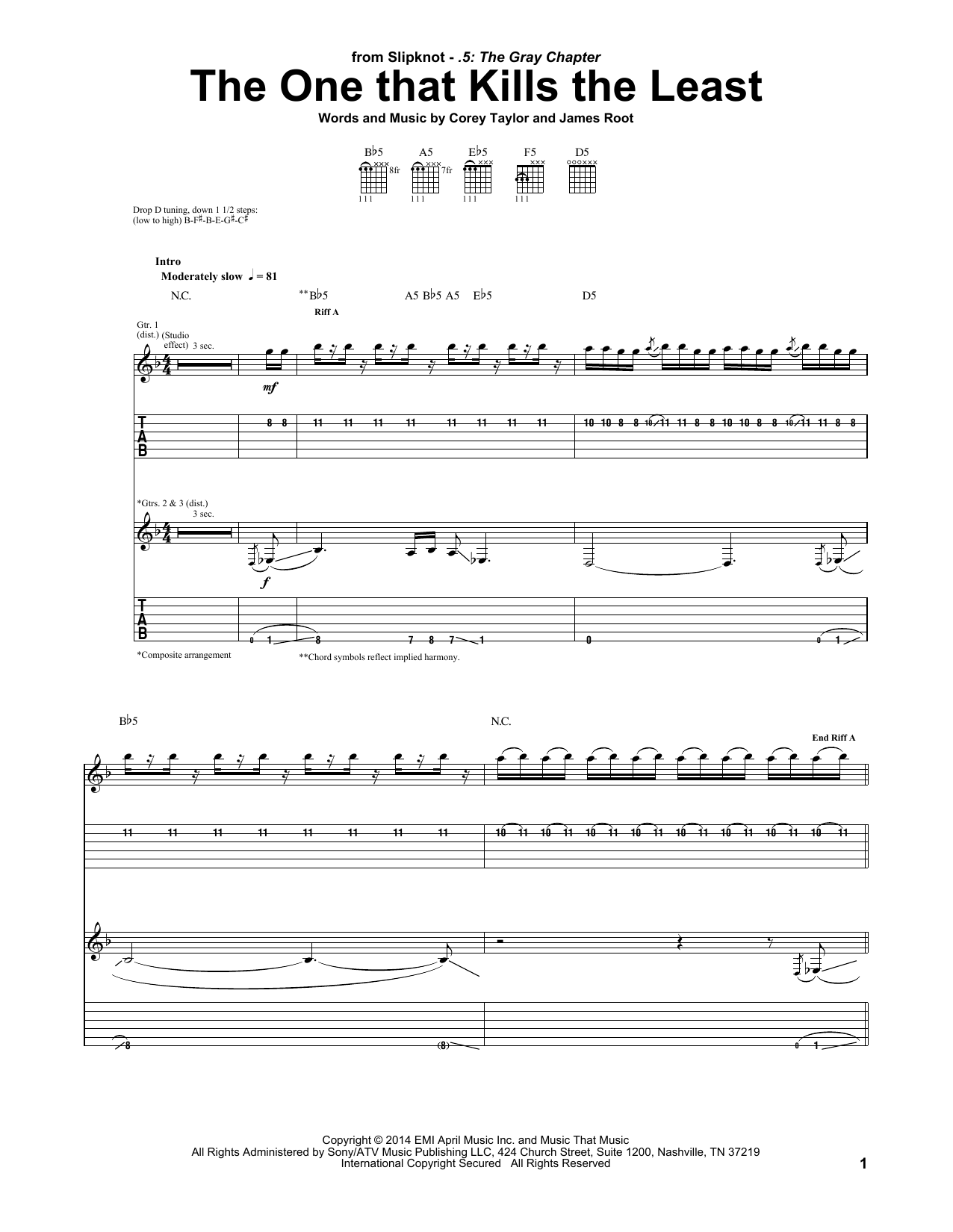 Download or print Slipknot The One That Kills The Least sheet music, chords and digital score arranged for Guitar Tab. This Rock score includes 12 page(s).